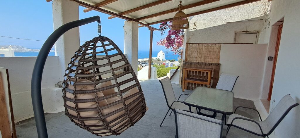 Mykonos traditional and modern Apartment at the top of Mykonos town “Chora”with super view of Down windmills and Mykonos sunset with also private parking and direct of the main road Mykonos to Ano Mera at Mykonos Center!